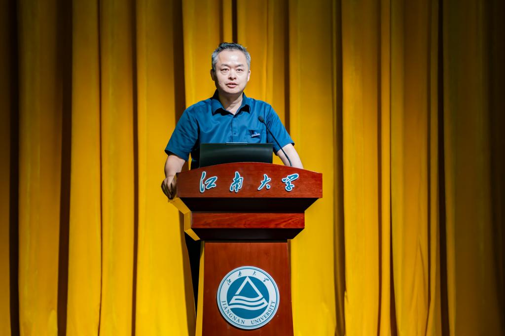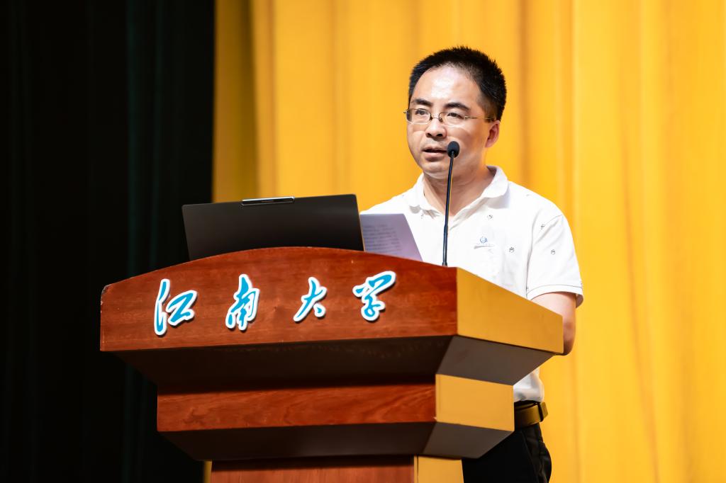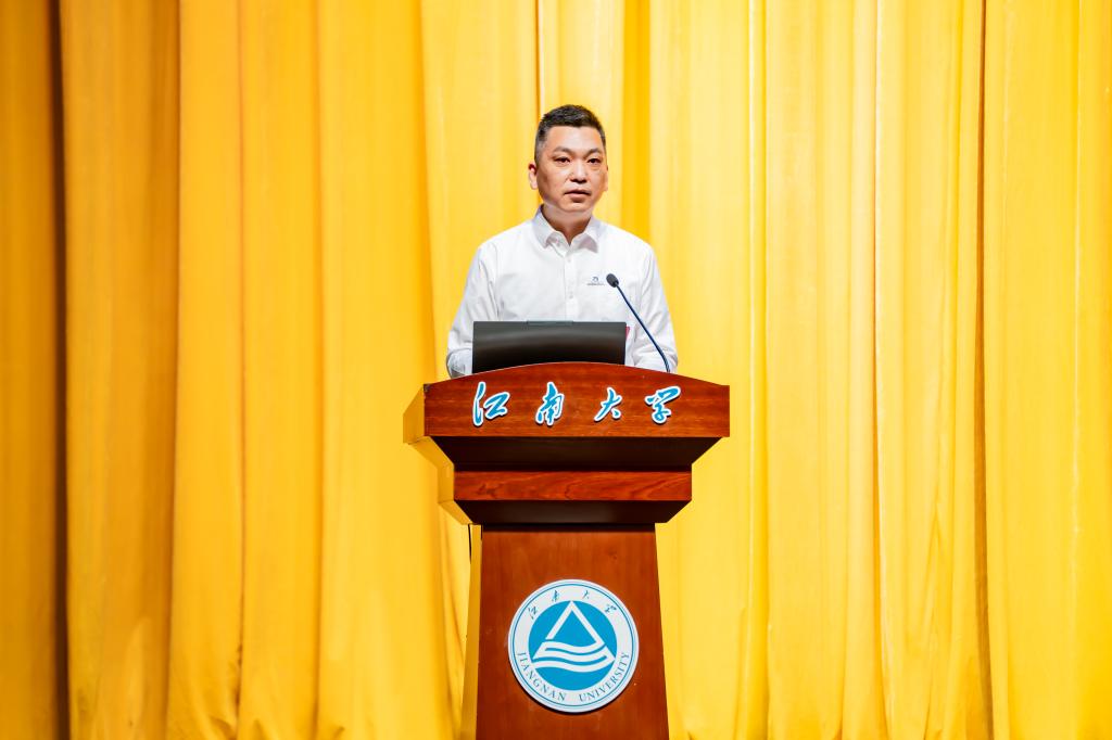 典礼最后,优秀员工李新以“以热爱铸就专业,以创新引领未来”为主题,为新生带来精彩分享。他深情回顾了自己从江大学子到企业家的奋斗历程,强调“热爱”是坚守的起点,“永争第一”是超越的动力,而“健全人格”是成就事业的基石,并分享了在工业自动化领域坚守自主创新的经验与成果。他寄语新生要珍惜大学时光,打好专业基础,勇于拼搏与探索,在家国情怀的指引下不断提升自我,把握时代机遇。