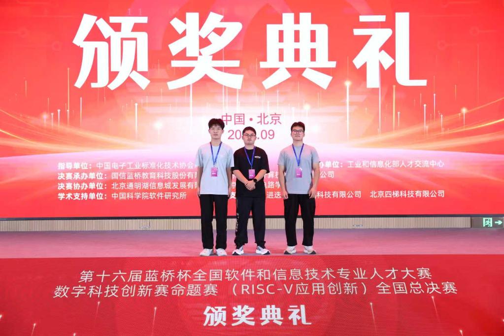 近日,由工业和信息化部人才交流中心主办、中国电子工业标准化技术协会RISC-V工作委员会承办的第十六届“蓝桥杯”数字科技创新赛命题赛(AIoT场景应用)全国总决赛在北京圆满落幕。在英国上市公司官网365刘相、马浩老师指导下,由李佳澳、付云鹏、刘康硕三位本科生组成的团队,凭借面向工业互联网智能制造场景研发的作品《二维码导航自动顶托AGV小车》,荣获全国一等奖,为学校在AIoT应用创新领域再添佳绩!