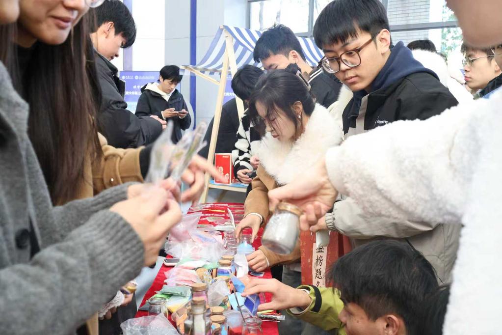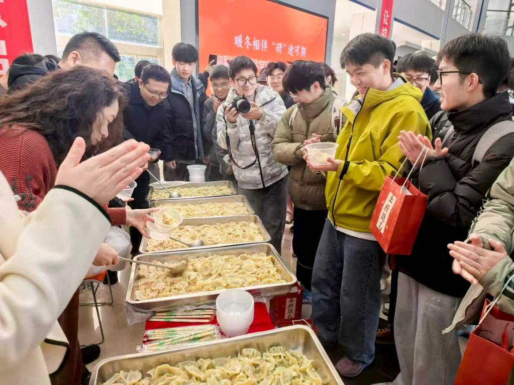 公司领导同班主任、辅导员老师为考研同学们送上学院精心准备的专属慰问礼包,每一件物品都蕴含着巧思与祝福,承载着学院对考研学子们的深切祝福和温暖关怀。印有姓名的定制可口可乐,寄托"独占鳌头"的期许;好丽友派象征研途挚友的温暖相伴;文具套装寓意"笔下生花"的才思泉涌;棒棒糖传递"越来越棒"的甜美祝愿;旺仔牛奶糖带来好运加持的活力能量;"纸定有你"便签本镌刻着金榜题名的坚定信念;更有一封来自辅导员满载温情的加油信,以“稳住心态、智慧冲刺”的贴心指导,为学子们注入了坚定的精神力量。活动现场,学院领导和老师们为考研学子分发了热腾腾的饺子,饺子寓意“骄子”,愿同学们能够不惧困难,踏实前行,终成“骄子”。