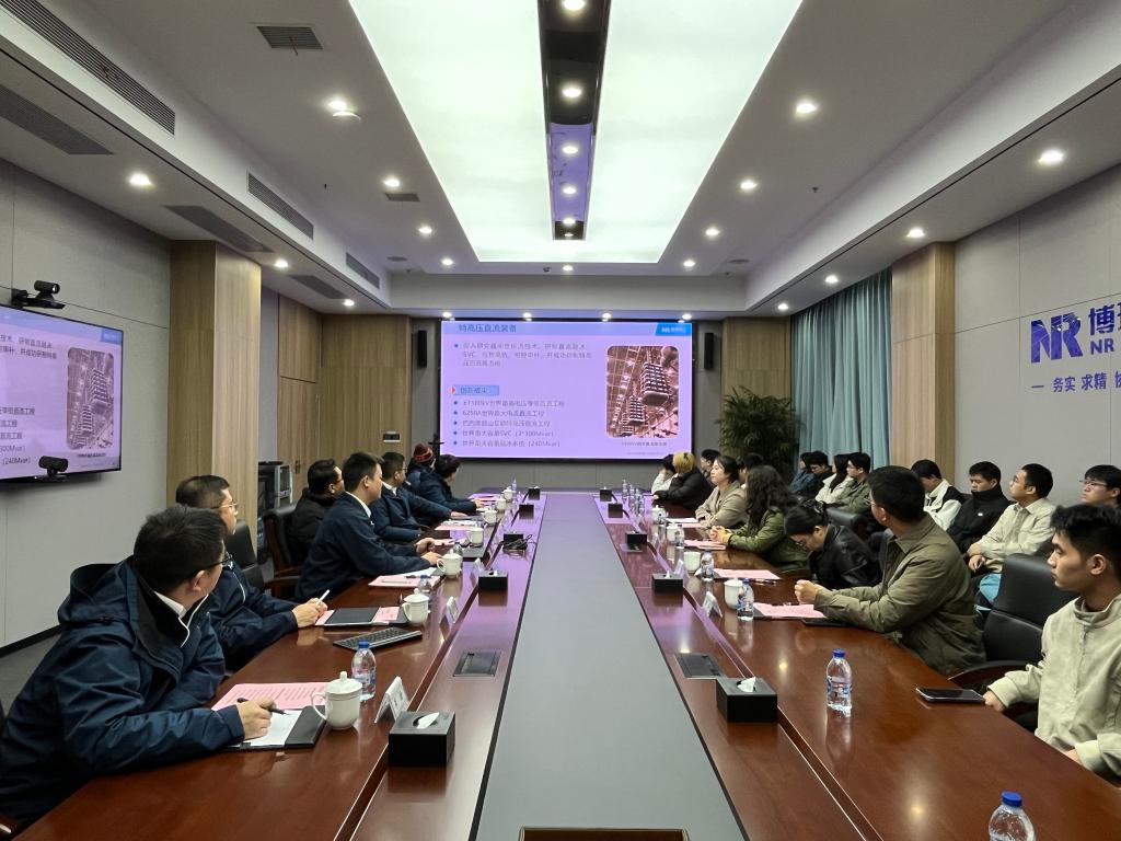 在相关负责人的引导下,师生一行首先参观了公司展厅、智能化生产车间、特高压试验大厅及先进的培训中心,近距离观摩了代表世界领先水平的±1100千伏特高压直流输电装备、柔性直流输电系统以及规模化储能产品,详细了解了博瑞电力从技术原创、装备制造到工程应用的完整产业链。企业庞大的规模、顶尖的研发实力和承担的多项“国之重器”工程,让师生们深感震撼,对智能电力装备行业的发展前景有了更直观和深刻的认识。