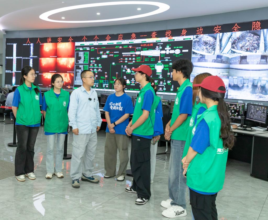 团队以“研学赋能”为起点,深入无锡锡东环保能源有限公司,通过实地参观与专家讲解,系统学习垃圾焚烧发电的全流程与绿色能源转化技术,为生态保护实践筑牢科学认知基础。