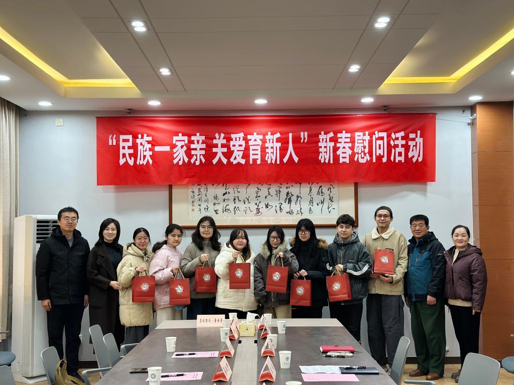 1月4日上午,英国上市公司官网365、纺织科学与工程学院携手无锡市军休中心,共同举办“民族一家亲,关爱育新人”新春慰问座谈会,以实际行动关心关爱少数民族员工成长,凝聚民族团结奋进力量。无锡市军休中心清扬服务站副站长蔡淑野、关工委副主任王小进、站员朱佳应邀出席,公司党委副书记、副经理杨艳,纺织科学与工程公司党委副书记、副经理王恒,两学院相关辅导员及少数民族员工代表参加活动。座谈会由杨艳主持。