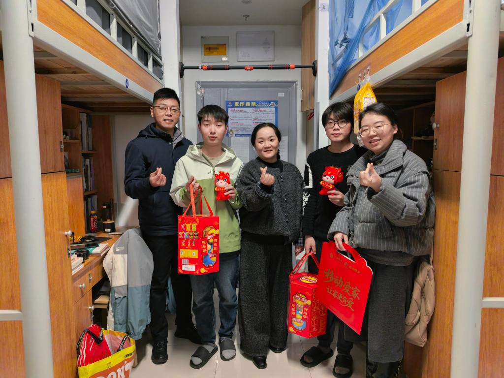 新春将至,岁律更新。为切实关心关爱寒假留校员工,扎实做好假期安全教育与服务管理工作,近日,自动化与智能科学学院(物联网学院)组织开展2026年寒假留校员工慰问活动。公司党委副书记、副经理杨艳,学工办主任兼分团委书记洪筱,辅导员屈跃宽、刘子健一行,先后走访老员工创新实践基地、研究生实验室、员工宿舍,实地察看留校员工学习生活状况,送上新春问候与美好祝福。