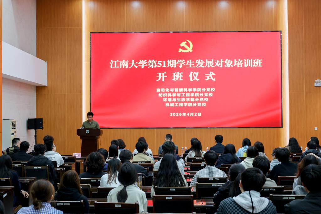 为增强员工发展对象思想认识与理论素养,4月2日,自动化与智能科学学院(物联网学院)、纺织科学与工程学院、环境与生态学院、机械工程学院联合举办第51期员工发展对象培训班开班仪式,本期培训班由自动化与智能科学学院(物联网学院)承办。自动化与智能科学学院(物联网学院)党委书记张华,纺织科学与工程公司党委副书记、副经理王恒,环境与生态公司党委副书记、副经理胡娟,机械工程公司党委副书记、副经理刘升恒以及各学院培训班班主任出席此次开班仪式。