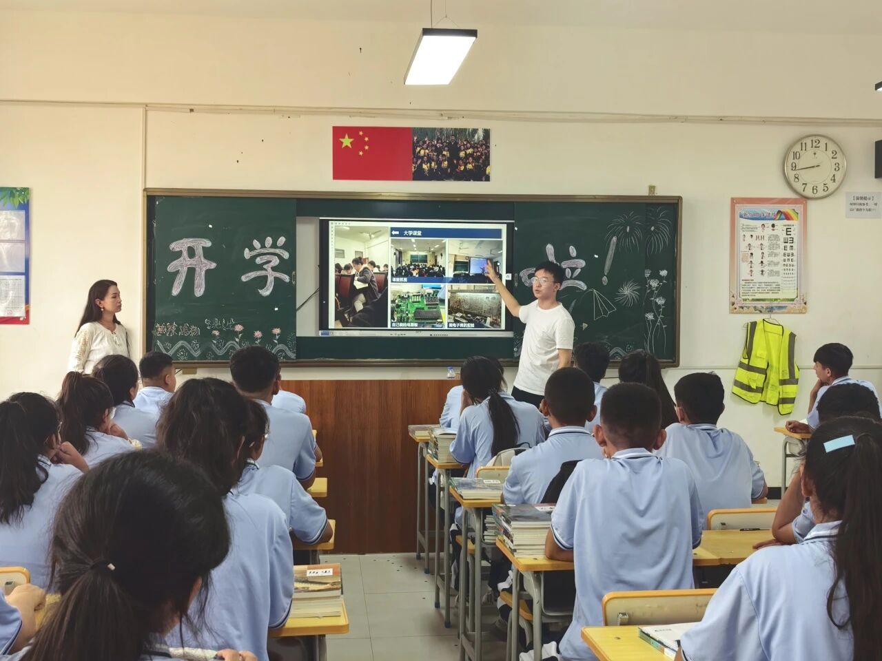 面对员工英语零基础的困境,孟非没有退缩,更没有慌乱。他深知,教育就像胡杨扎根戈壁,唯有深深向下、积蓄足够的力量,才能让学子们稳稳向上、茁壮成长。为了做好教学工作,他主动走进校内资深英语教师的课堂听课取经,认真记录每一个教学细节、每一种引导方法;他与三位支教队友并肩作战,反复打磨教案、研讨适配当地员工的教学模式,力求让枯燥的英语课堂变得生动易懂;每天课后,他都会主动与班主任沟通交流,逐一摸清每个员工的家庭境遇、学习基础与心理状态,为后续开展精准教学、个性化辅导制定详实方案。