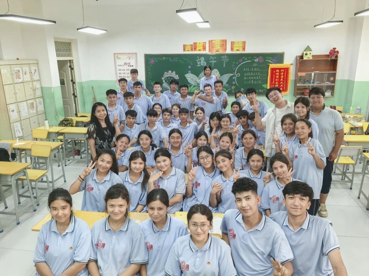 和同学们合影
